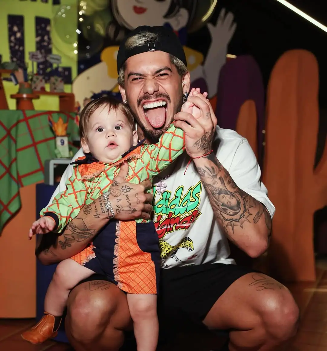 Nesta quinta-feira (19), Zé Felipe voltou para Goiânia para cumprir agenda profissional, o cantor matou a saudade do filho caçula, José Leonardo e compartilhou o vídeo de um momento encantador ao lado do pequeno que aprendeu a falar "papai" (Foto: Instagram)