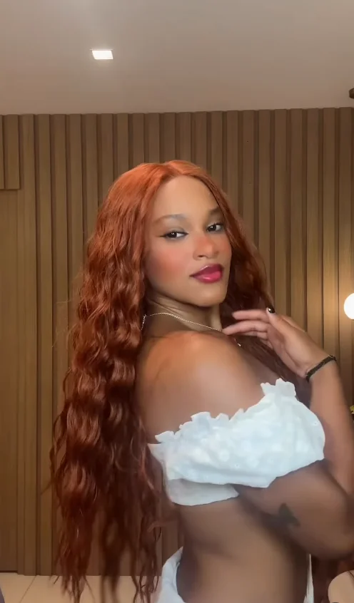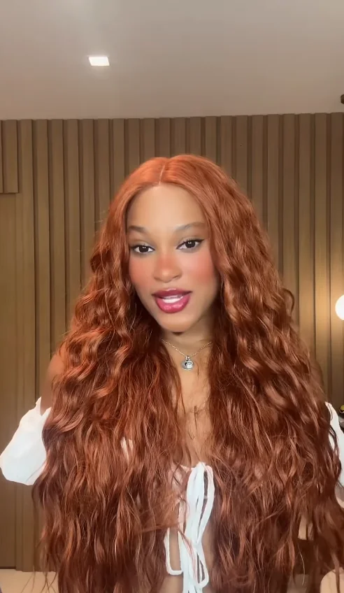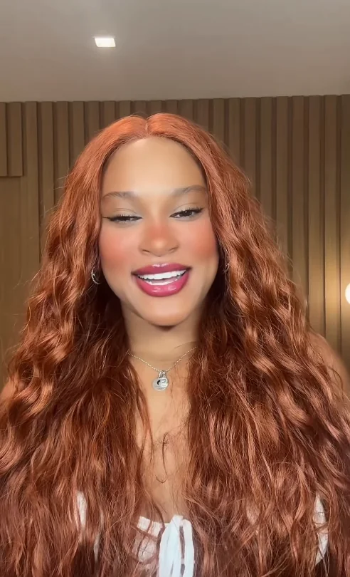 Conhecida por mudar o visual com frequência, ela exibiu os fios longos em tom avermelhado e escreveu na legenda: “Que pecado”.