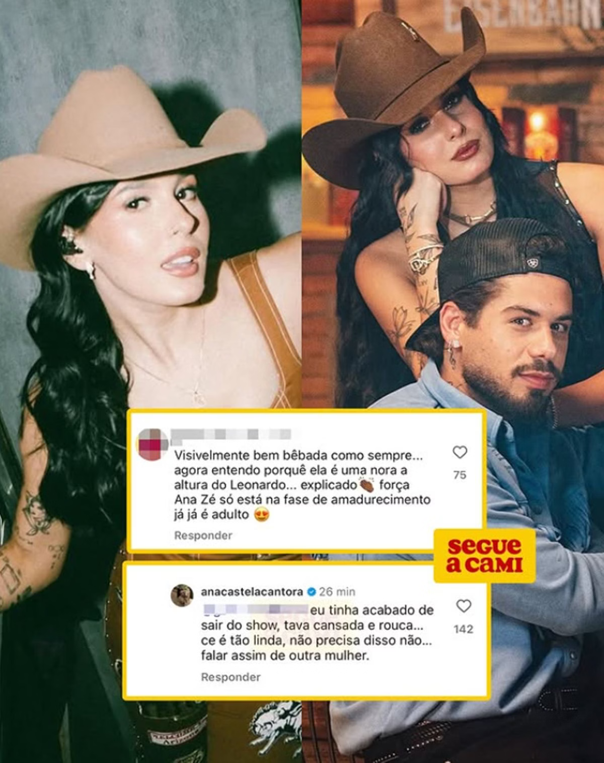 Entretanto, em uma dessas postagens, uma internauta acusou Ana Castela de estar bêbada no vídeo, ironizando sua relação com o cantor Zé Felipe e fazendo referência ao cantor Leonardo, pai de Zé. “Visivelmente bem bêbada como sempre… Agora entendo porquê ela é uma nora à altura do Leonardo… Explicado”, comentou a usuária.