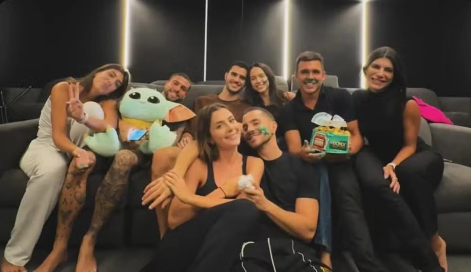 A imagem foi publicada nos stories de uma amiga próxima de Jade e mostrava o grupo reunido na sala de cinema da casa. No clique, André aparece abraçado à atriz, que sorria enquanto os convidados se divertiam. “Assistindo o último capítulo com o próprio Profeta”, escreveu a amiga, em referência ao personagem do ator na trama.