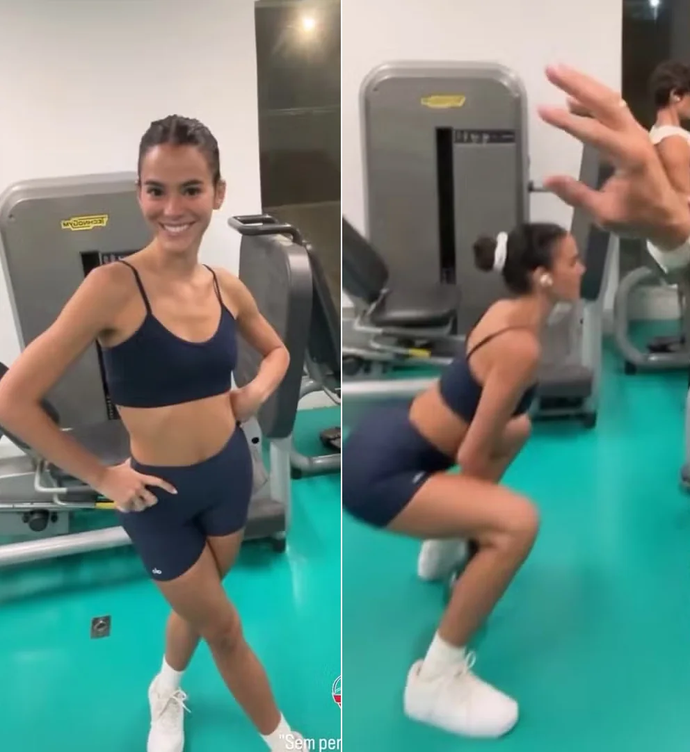 De volta ao Brasil após passar o período de Ano Novo com Shawn Mendes nos Estados Unidos, Bruna Marquezine retomou seus treinos presenciais com foco total. Em vídeo publicado pelo personal trainer Chico Salgado, a atriz aparece concentrada em sua série de exercícios utilizando fones de ouvido, chegando a não ouvir os chamados do profissional enquanto executava os movimentos.