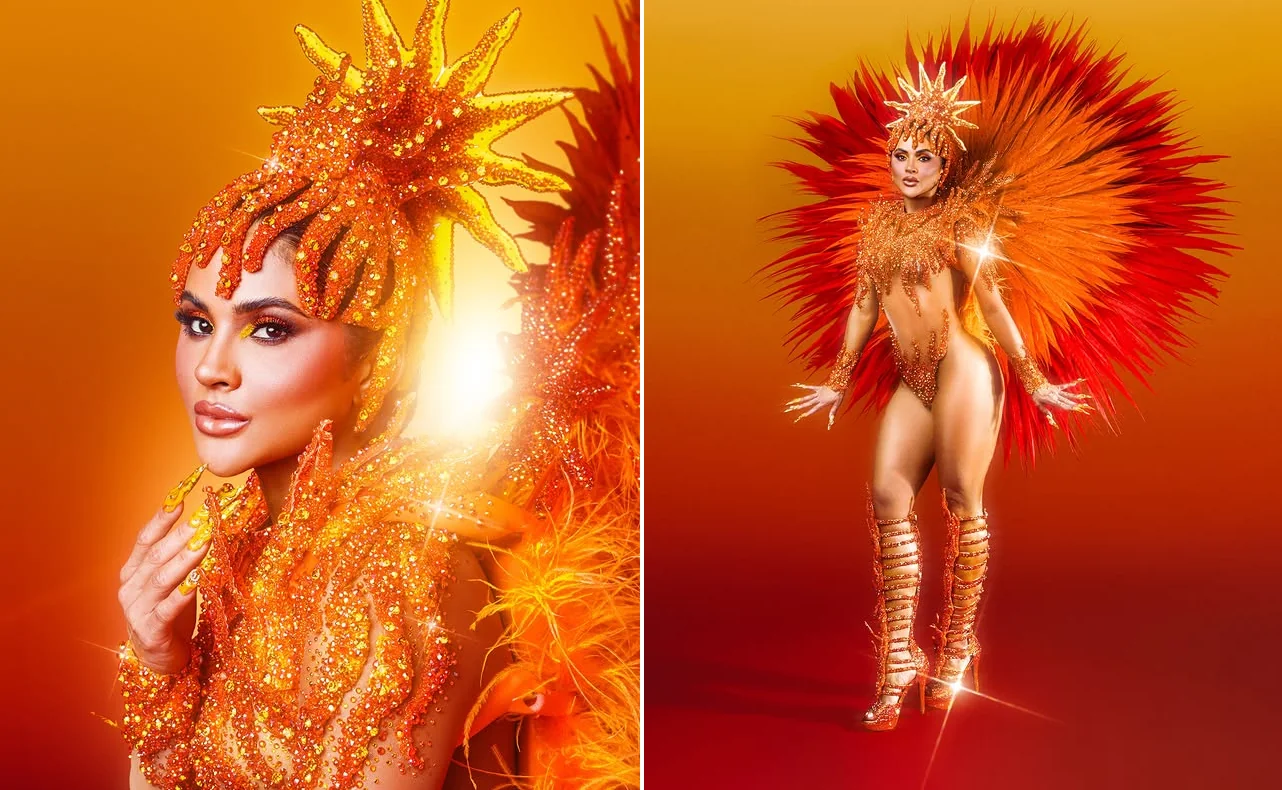 A escola leva para a Avenida uma narrativa inspirada na trajetória da autora brasileira, e Mileide explicou que a fantasia faz referência a esse contexto. Ao compartilhar imagens do figurino nas redes sociais, ela detalhou o significado da produção.