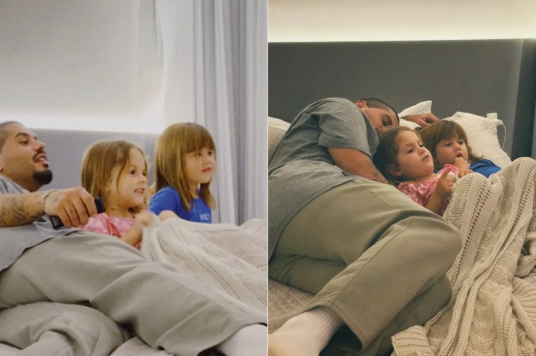 Além das imagens, Zé Felipe também compartilhou vídeos com as filhas. Em um dos momentos, as meninas pedem ao pai para assistir a um filme de “criancinha”.